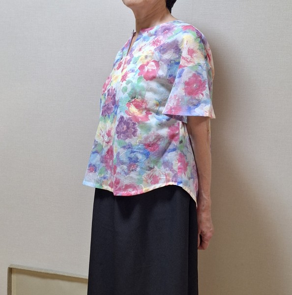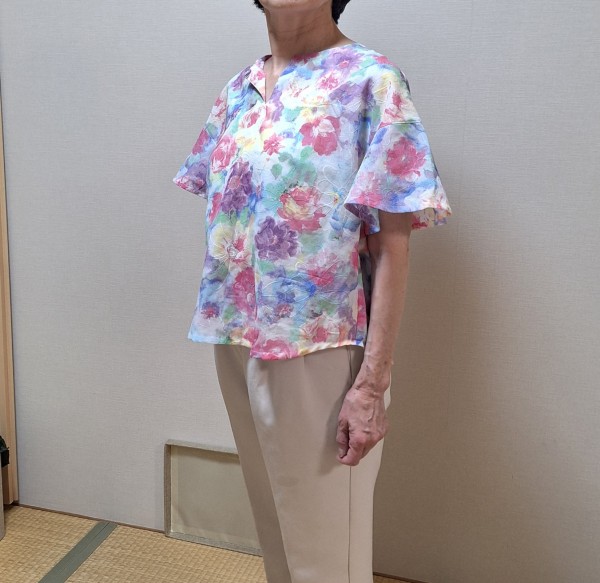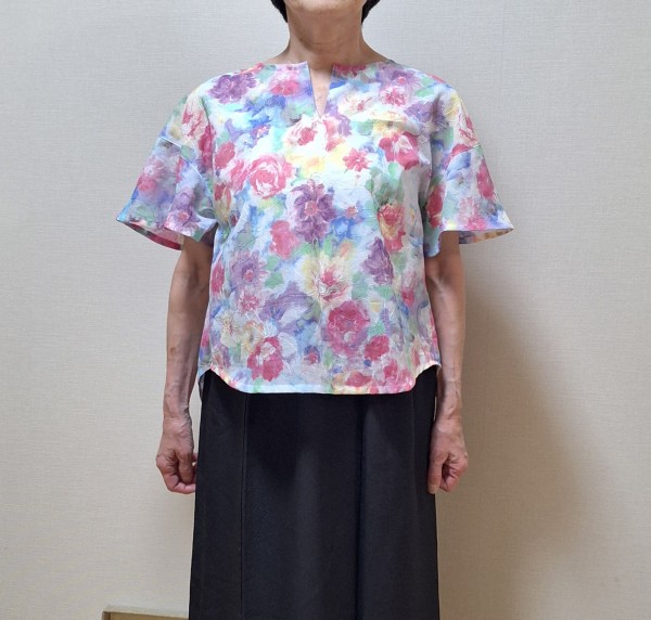 | 「月居良子のシャツ&ブラウス」より、フレア袖のブラウスを作りました。 夏らしい爽やかなトップスができました!母へのプレゼントです(^^) |