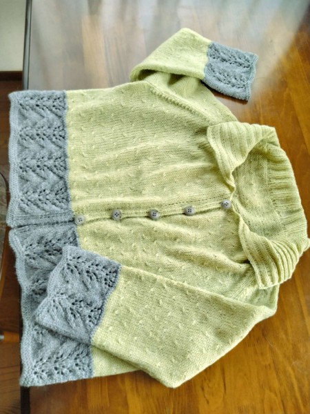 ゲージがレシピと違ったので目数を調整しながら編みましたが、アイロンをかけたらかなり滑らかになり、サイズも少しゆったりしました。