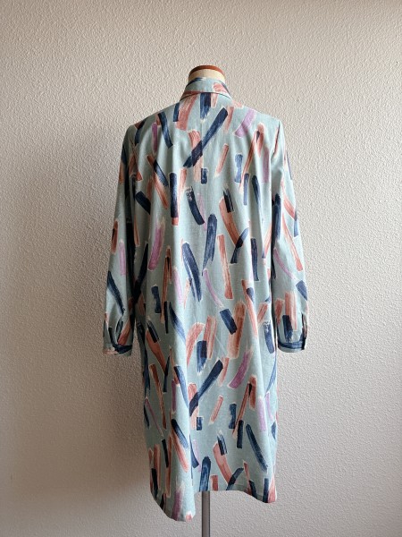 HOKKOHの生地で、シャツワンピースを縫いました。