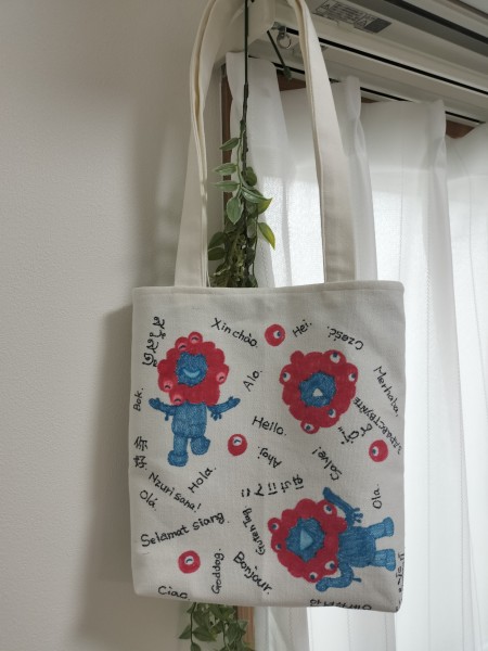 大阪関西万博のミャクミャクを直接油性ペンで描いてトートバッグを作りました。関西に住んでいますので万博をハンドメイドで盛り上げたいと思っています。