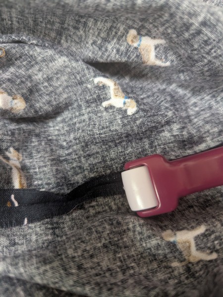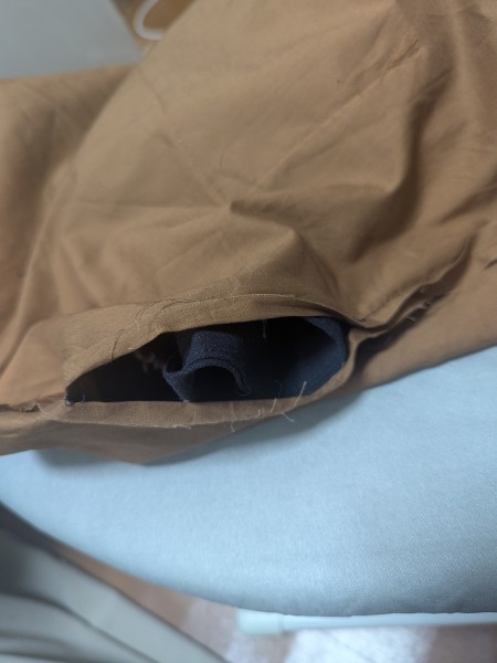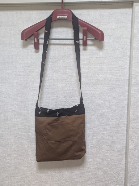 以前私のシャツを作った生地が残っていたので、愛犬とのお散歩バッグを作りました。裏布は日焼けしてしまった生地を使いました。何も付いていないシンプルなバッグです。
