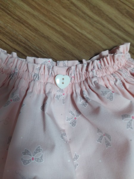 姪っ子ちゃんのセットアップを作りました。YouTubeの型紙無しで作れる子供服を検索して参考にしました。カボチャパンツは、前後わかりづらいので、目印にハートのボタンを付けました。小さいので、あっという間に出来ちゃいました。