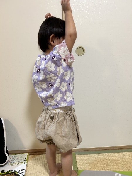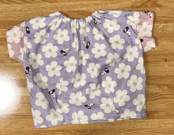 | 2歳の娘のトップスを作りました。袖付けが一番難しかったです。前ヨークは裏地付き。ダブルガーゼにしました。 身丈が短く、手を挙げるとお腹が見えちゃいます… |