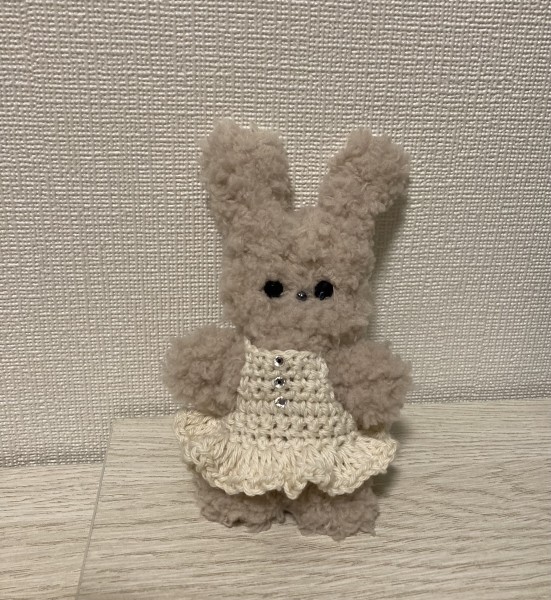 ミニドールと同じように編みましたが、気にいらない点があり。見た目にはわからない程度に編み方を変更して,かわいいドレスが完成。