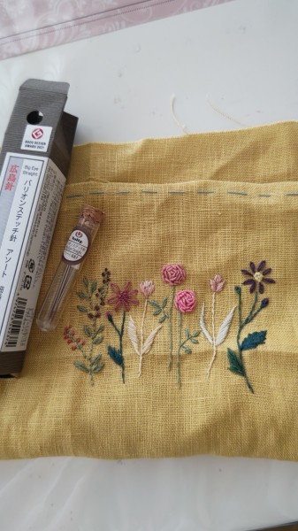 バラのバリオンステッチは、専用の針を使用、心地よく糸が抜けます。裏にひっくり返すとペタンコになるので、プレゼントに送る時も便利です。