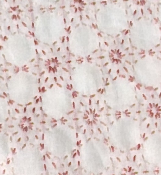 セリアの刺し子「飛び麻の葉」です。桃色の濃淡で刺しましたが麻の葉の模様がハッキリとしなかったのが気になりました。勉強になりました。
