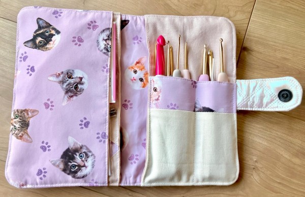 | かぎ針編みを始めてから随分道具が増えてしまい、収納が足りなくなってきたので全部収まるようなポーチを作りました。 セリアで見つけた圧着キルトとダイソーのインクジェットプリント生地を使っています。ミシンはあまり得意ではないんですが、今は動画で教えてくれるアプリがあるので、おかげですごく助かりますね^ ^ |