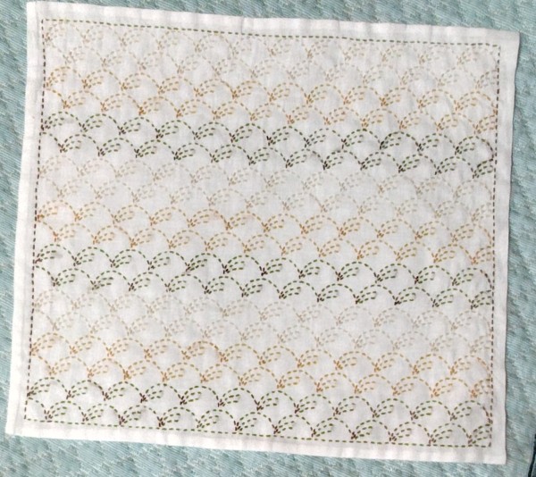 ホビーラホビーレの刺し子布巾「野分」を茶系3色で刺しました。落ち着いた感じになりました。