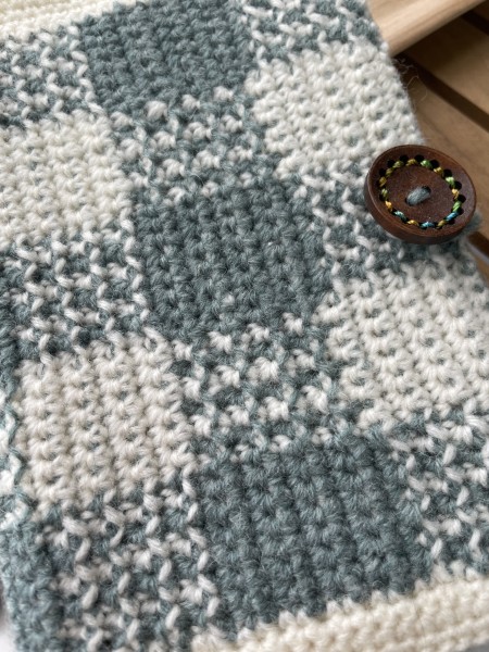 チェックの模様編みも、ボタンもこだわりが感じられます!