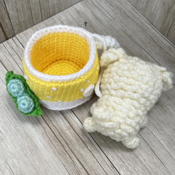 ビールの泡が、フワフワなわんちゃんになっているあみぐるみです。