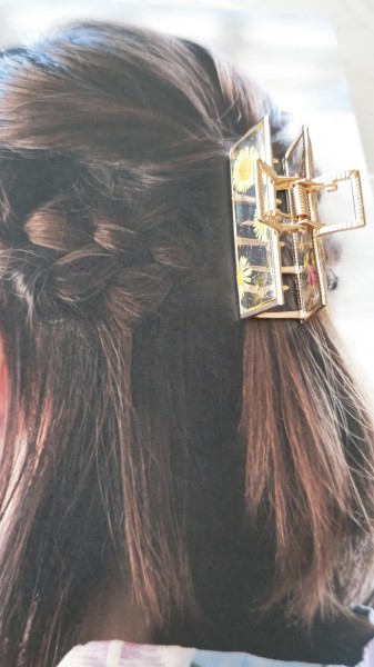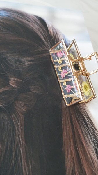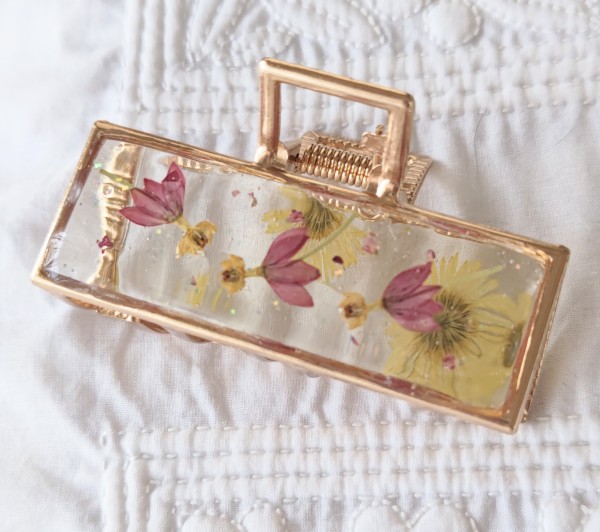 バンスクリップ。押し花とレジンで、両面柄が違うのが特徴です。