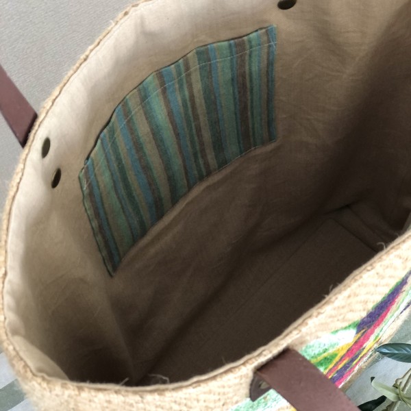 手染め糸、手織り布、そして麻袋のイラストがマッチしていて