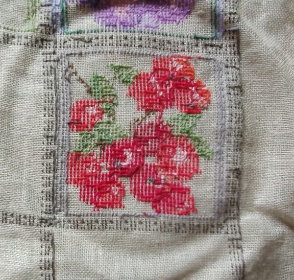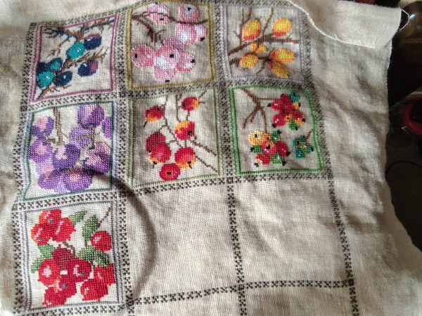 ブルーベリーの仲間のようです。赤い実が続いていますが可愛いので刺していてたのしいです。