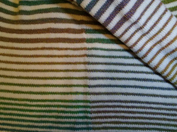 | しましまのセーターです。裾からパーツを別々に編んで、ヨークでまとめて編み上げる方法でした。元のパターンとはゲージも違うし、ヨーク丈を伸ばしたり前後差つけたりとちょいちょい変更して計算し直した分、ちゃんと希望の形になるのか不安もありましたが、無事に完成できてよかったです。 細めの糸を触りたくなって、つい始めてしまいました。セーターになる予定で、試し編みも兼ねて?!袖から編んでます。 |