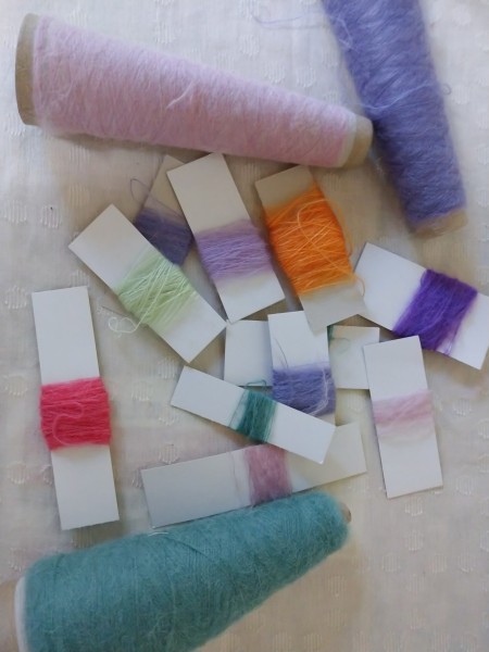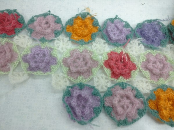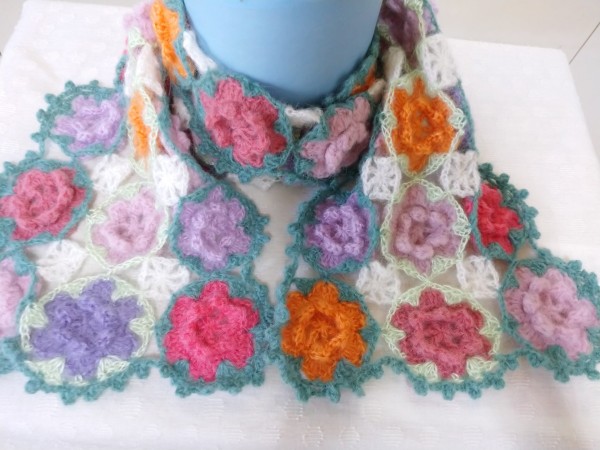 モヘアの毛糸が残っていたので肌触りの良い毛糸を選んで、『お花畑のマフラー』を編んでみました♪