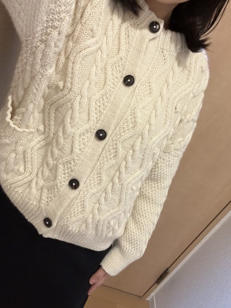 | アランカーディガンです。 大変だったけどサイズもちょうど良く出来上がりました。 |