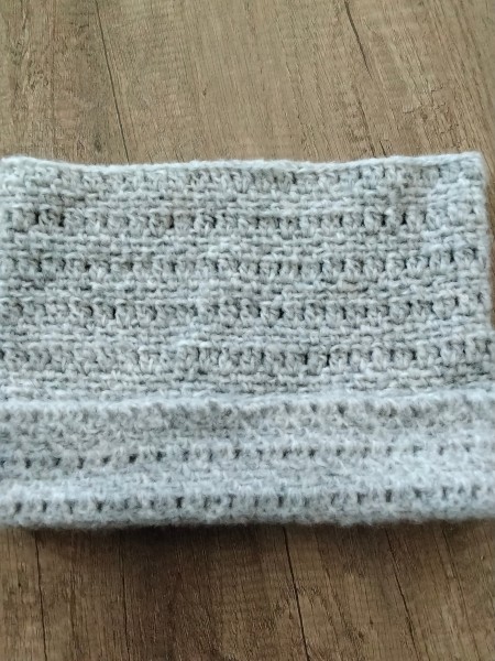 糸のあるだけ編んだので少し長くなり、折ってかぶる感じになりました