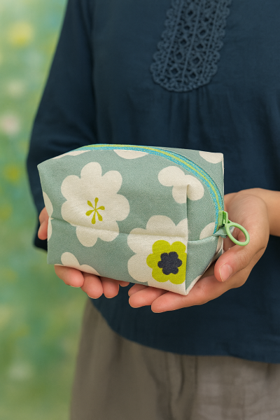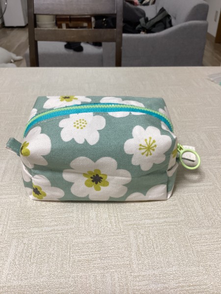 小さいメイクポーチにちょうどいい大きさのスクエアポーチです。