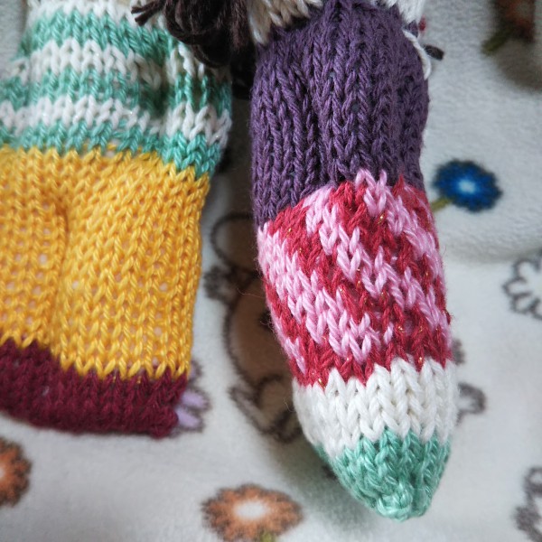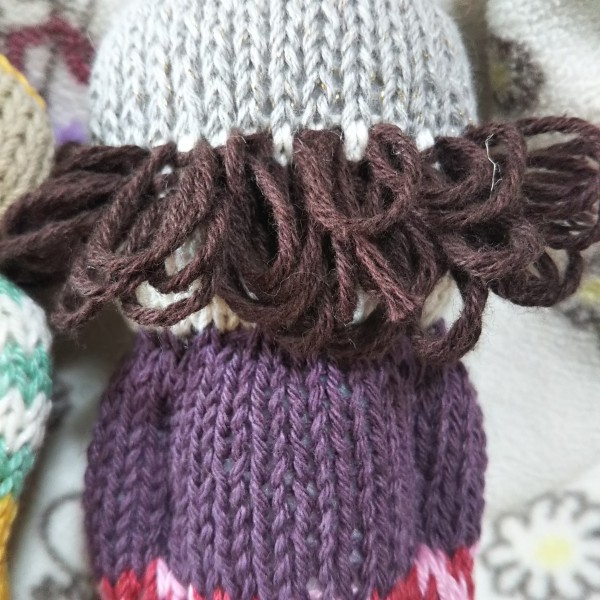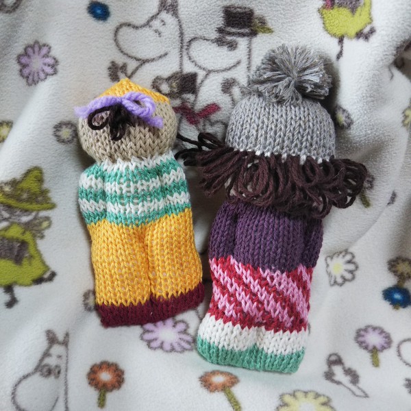 | スウェーデン編み人形。 余り糸のサマーヤーンで編む。 初めに編んだ髭の方は、帽子の減らし目の無い部分を編み忘れてしまって、いがぐりみたいな頭になってしまったので、名前はイガアタマクリオ。 糸の色や素材、髪型や表情で色々楽しめそう。 |