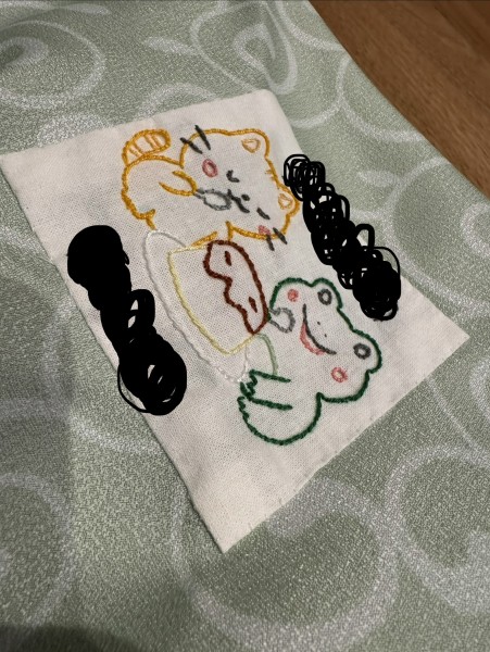 娘のパジャマ風呂敷に刺繍しました!