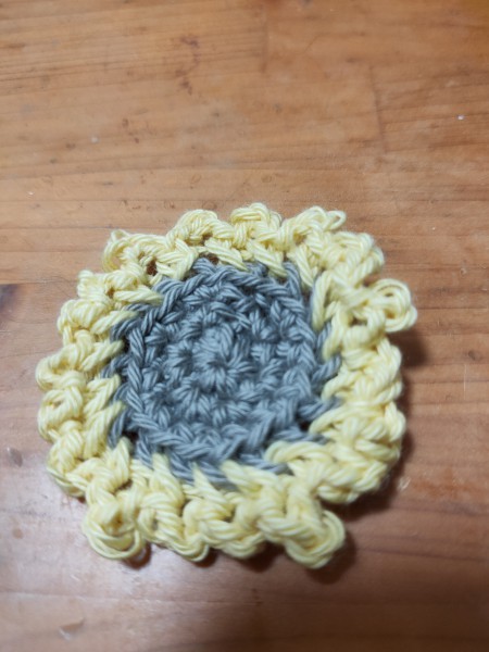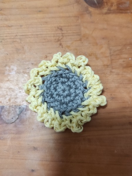 ひまわりモチーフ。茶色がなくて真ん中がグレーになりました。