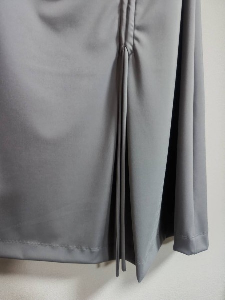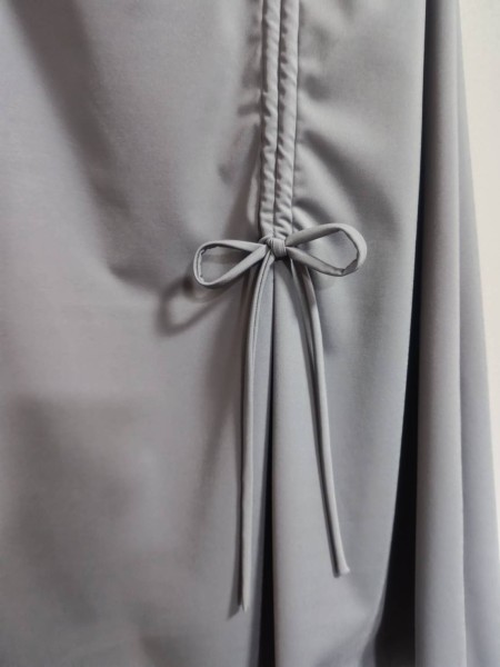 紐をしぼることでシルエットが変化します。紐の長さはスカート丈ほど長いので、紐作りも勉強になりました。