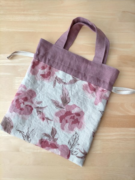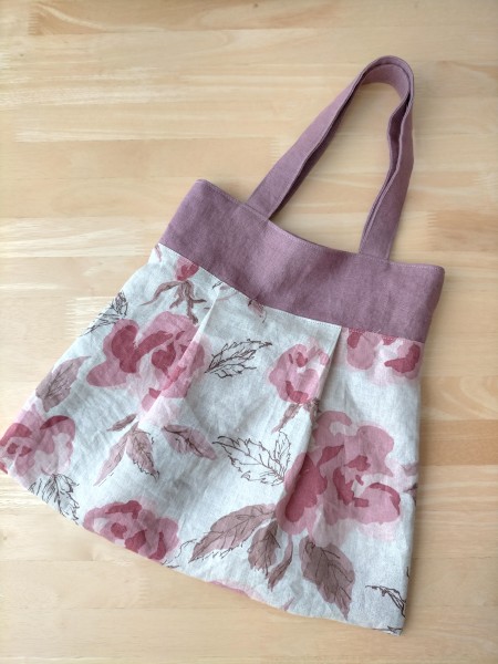 生地幅×50cmのリネン生地を使い切りしたくて2つバッグを作りました。巾着袋とタックを入れたバッグです
