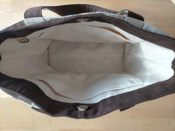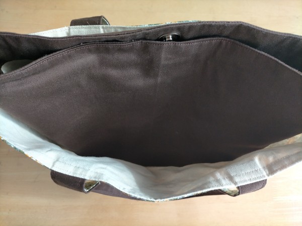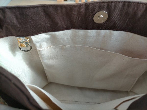 母用に。あおりポケット付きトートバッグ。baby&kidsさんの作り方を参考に、吊りポケットやDカンを付けて作りました。