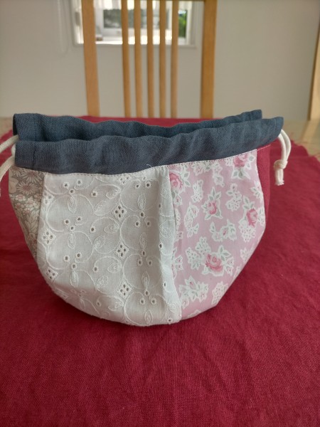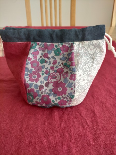 yasuminさんの動画を見て作りました。大好きな生地の森の赤いリネンとLIBERTY生地で作りました。