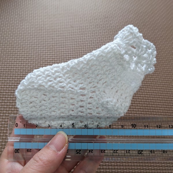 真っ白のベビーソックス。妊娠中の赤ちゃんの退院着(セレモニードレス)に合わせる予定です。本人にお腹をドコドコされながら編みましたけれども!笑 生まれたら履いてくださーい(^_-)-☆