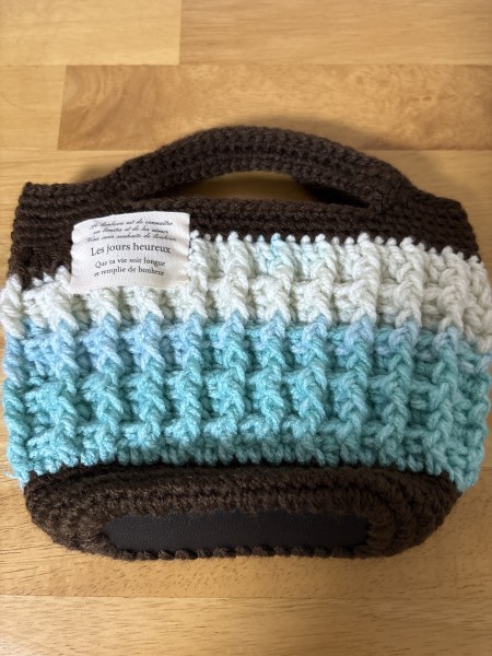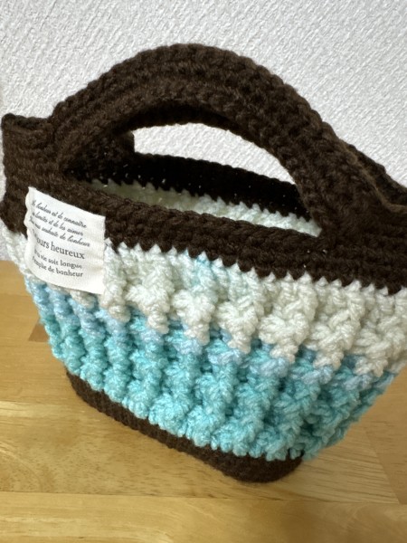 モチーフトートバッグの余り糸で、ワッフル編みのバックinバックを編みました。チョコミントを意識しました。