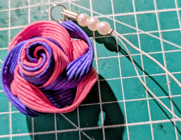 クラフトバンドのあまりで、バラのキーホルダーを作りました。