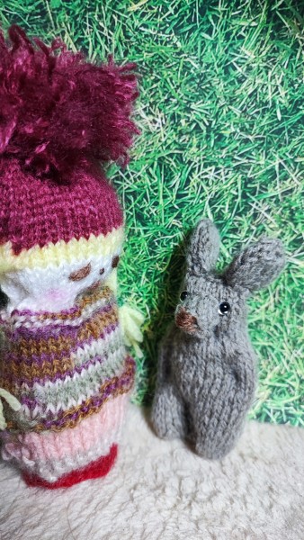 棒針編みが楽しかったので、先日編んだ女の子のおともだちに。