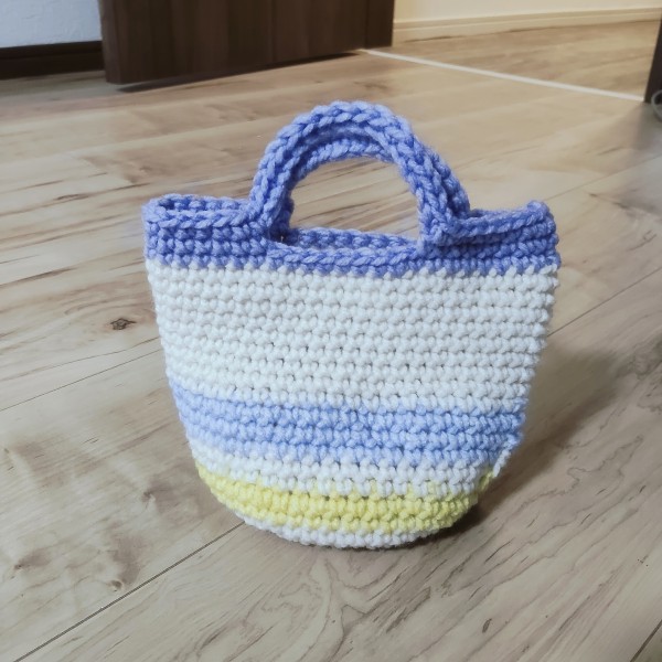かぎ針7号で持ち手をつけたバッグ大、小作りました。あまり毛糸がたくさんあるので、色んな色で作れそうです。