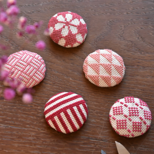 | 刺しゅうキット 『和模様 包みボタン 5個セット 赤 2802』 LECIEN ルシアン cosmo コスモ 苦手な刺繍でしたが時間をかけて完成させました |