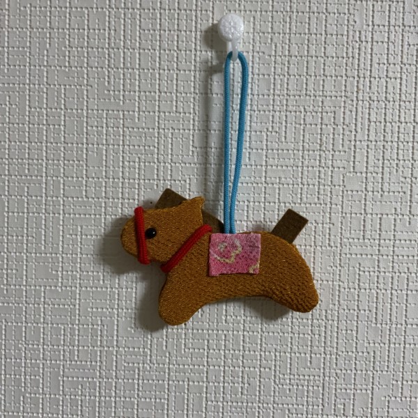 | 厚紙に縮緬を貼り付けて、ストラップにしました。 視覚障害の方のリクエストを受けて、講習で作ってもらうために考えた作品です。 (実際作ってもらうときは、厚紙や布はあらかじめカットしたり、かなりお手伝いをしたキットになります) 布の裏側にはキルト芯をはさんています。 ストラップにしたときにバランスがとれるよう、中に磁石を入れたので、マグネットとしても使えます。 |