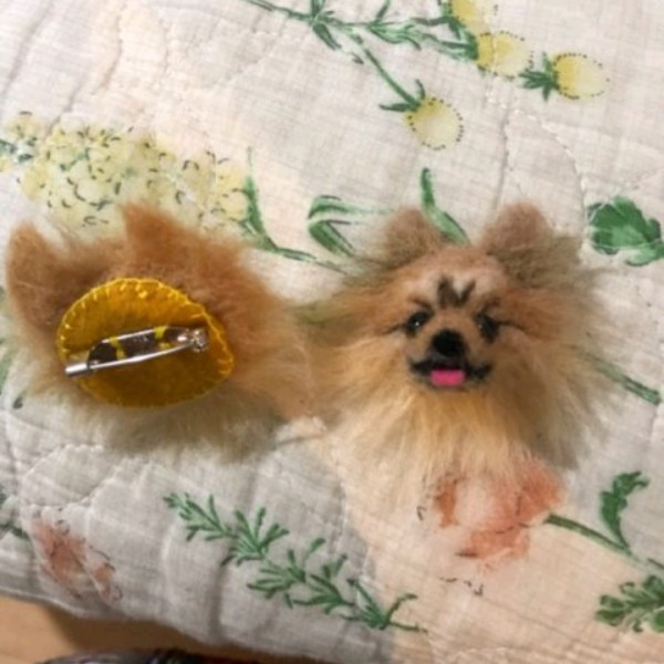 ブローチ用のピンがあったので作ってみました。ちっちゃいけど我が家のワンコをモデルにしました。