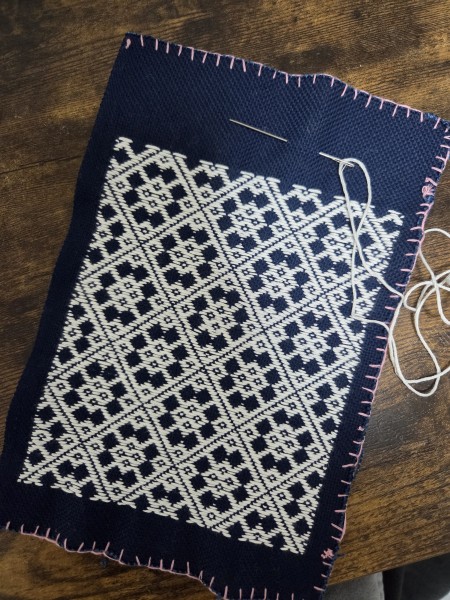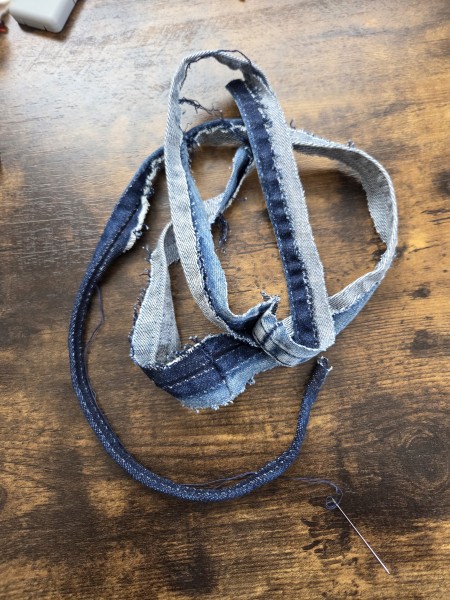 紐に何を使うか悩んだ末、同じデニムを使いました。