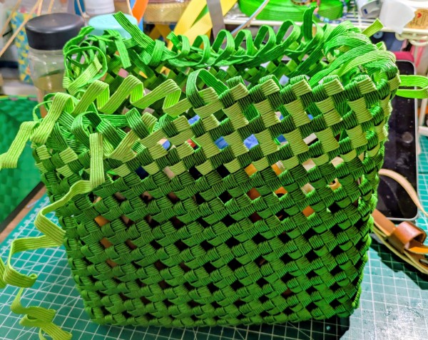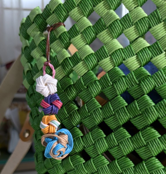 クラフトバンド6本幅でバッグを作ろうと思ったのですが、取っ手をどうするか考え中です。