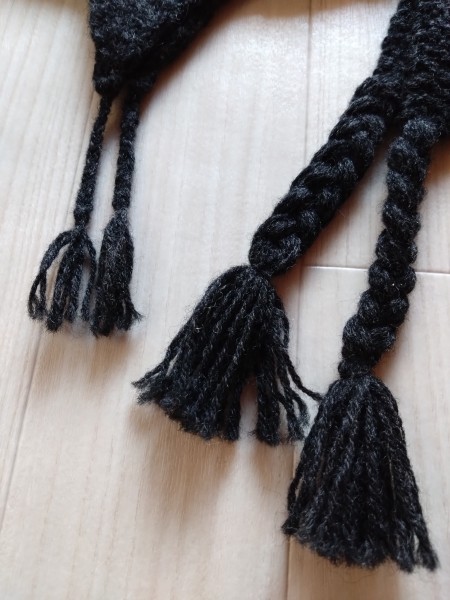 耳当て付き帽子の改良版を編みました。