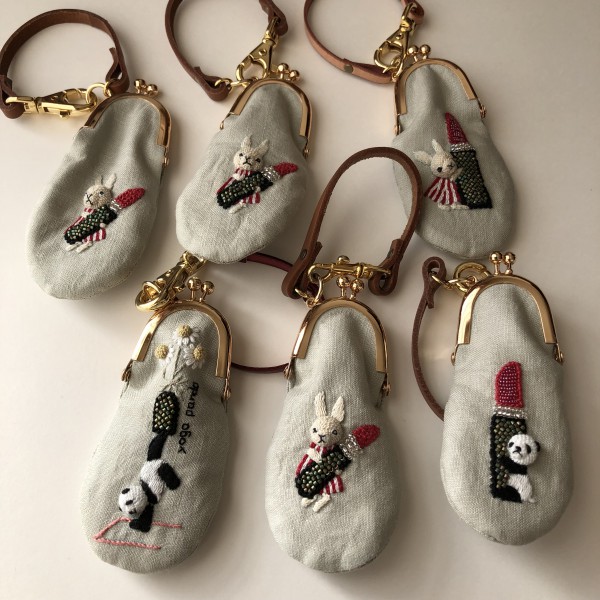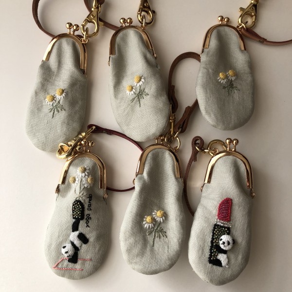 うさぎの立体刺繍をしてリップを入れるケースを作りました カバンにぶら下げて使えます  裏面も花を刺繍