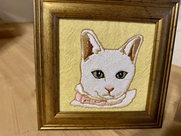 写真画像をイラストに描き、刺繍ミシンデータに変換し、ミシン刺繍しました。