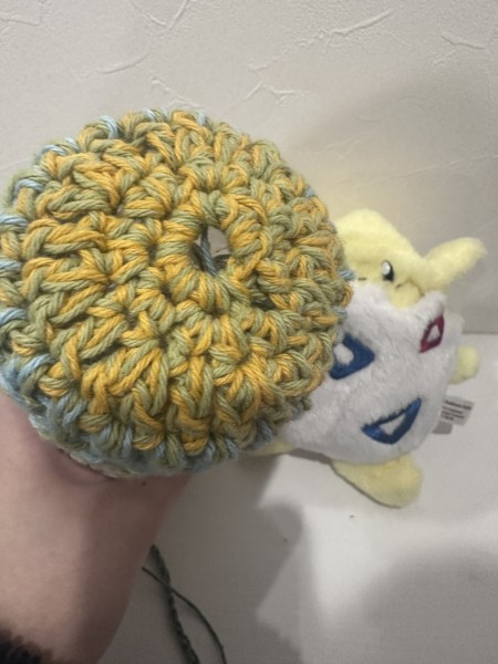 コットン毛糸で結露を気にしなくていいし、Dカンついててカバンに付けられるし、透かし編みだからサイズも融通きくし、口もしぼられるし、、適当に作った割にはお気に入りの1品になりそうです!