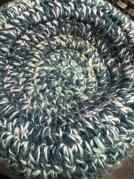 かぎ針で帽子をあむのは初めてで、円状に編むのはサイズ調整しやすいような難しいようなといった感じがしました^_^