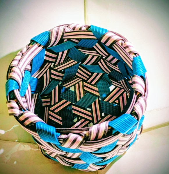 久しぶりにクラフトバンドで 鉄線編みの六つ目かごを作りました。