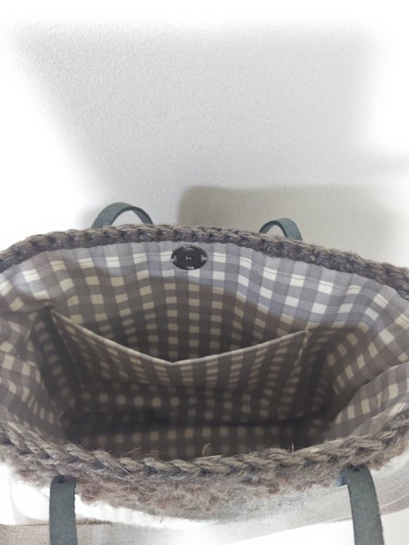 | 主な材料 | 麻ひも、毛糸、革持ち手 |