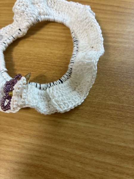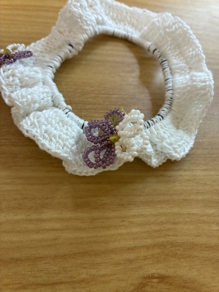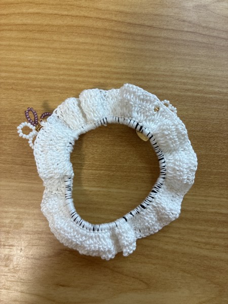 大好きなぬいぐるみに似合う、つけ襟風シュシュを作ってみました。