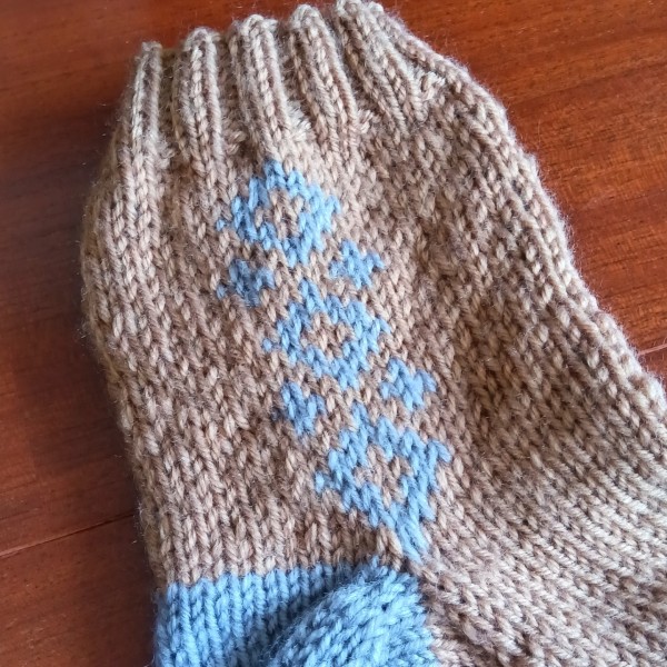 | 靴下を編みました。 編み込み模様の糸を片手で持ちたくて、頑張りました。 地色がグレーの方は、裏に絡めた糸を引っ張ってしまったようで、窪みが出来てしまいました。 地色が茶色の方は、引っ張りすぎないように緩めて編んだら、配色の色が表から出てしまいました。 どちらもちゃんと履けますが、もっと快適に履けるように、精進したいと思います! |