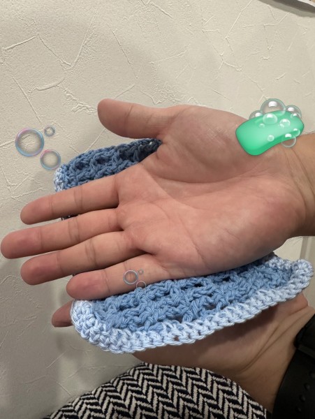 ワッフル編みだと空気を含んで肌触りが良かったうえ、なにより可愛いので量産したいです!