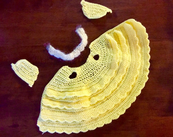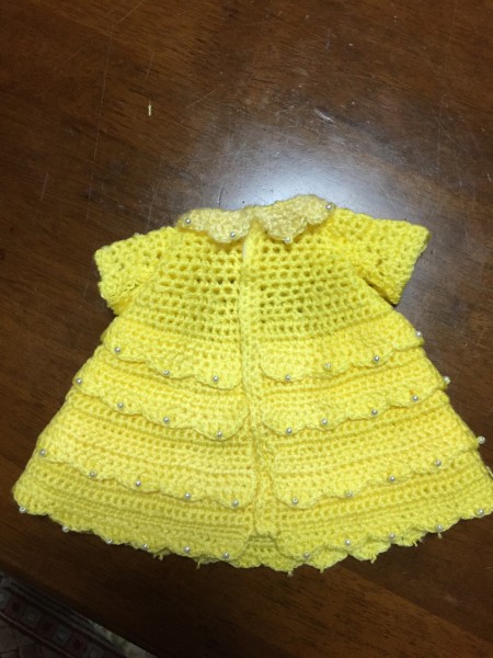 娘のお人形のドレス。それに合わせて、ヘッドドレスと靴下も作った、